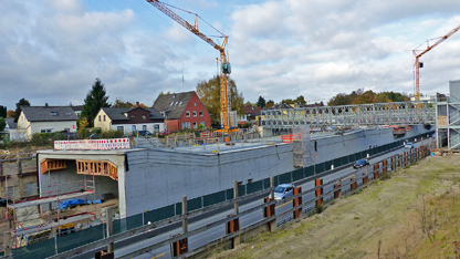 Viele Bohrpfähle müssen gesetzt werden, teiweise über 20 Meter tief. t Die Tunnelwände stehen jetzt kommt der "Deckel" drauf.