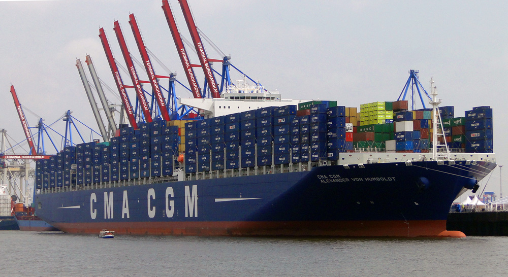 2013 "CMA CGM ALEXANDER VON HUMBOLDT" Am 30.05.2013 das größte Conteinerschiff der Welt wurde in Hamburg getauft. Länge: 396,0 m Breite: 54,0 m. 16200 Container.